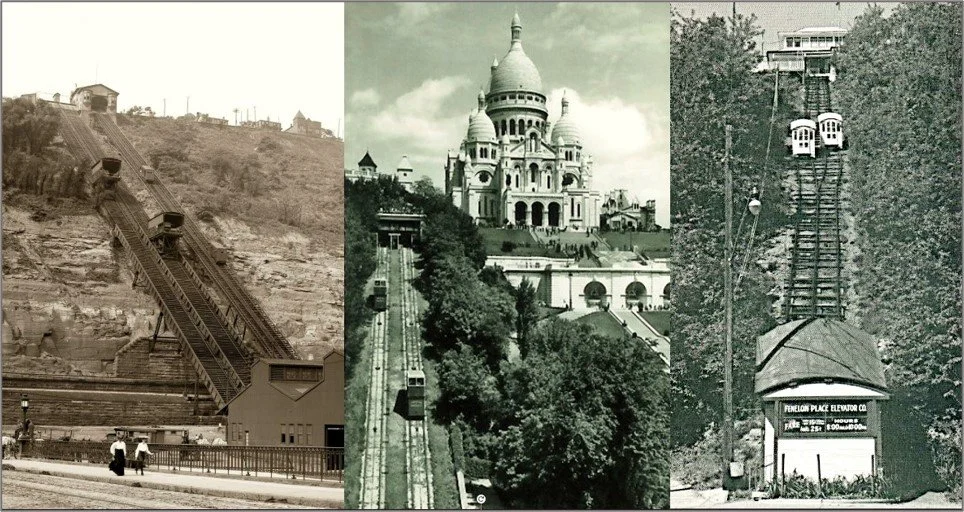 Pittsburgh is the home of the world’s oldest passenger incline in continuous service, the venerable Monongahela Incline, ascending and descending simultaneously since 1870. I wrote about it for the latest issue of Pittsburgh Magazine in “The Secrets of 10 Pittsburgh Landmarks” and found out some fascinating facts about the history of hillside transport.